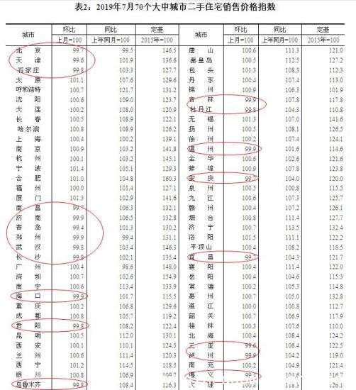 来源:国家统计局官网。红圈内为二手房价环比下跌城市。