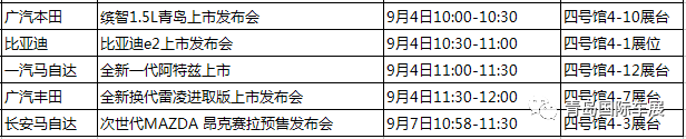 新能源品牌比亚迪、欧拉、北汽,广汽丰田、一汽马自达、长安马自达、斯巴鲁、上汽大通、捷途、北京现代、东风悦达起亚、广汽本田、领克、东风本田等品牌携手亮相。其中广汽本田、比亚迪、一汽马自达、广汽丰田、长安马自达将分别在4日和7日献上精彩新车发布活动。