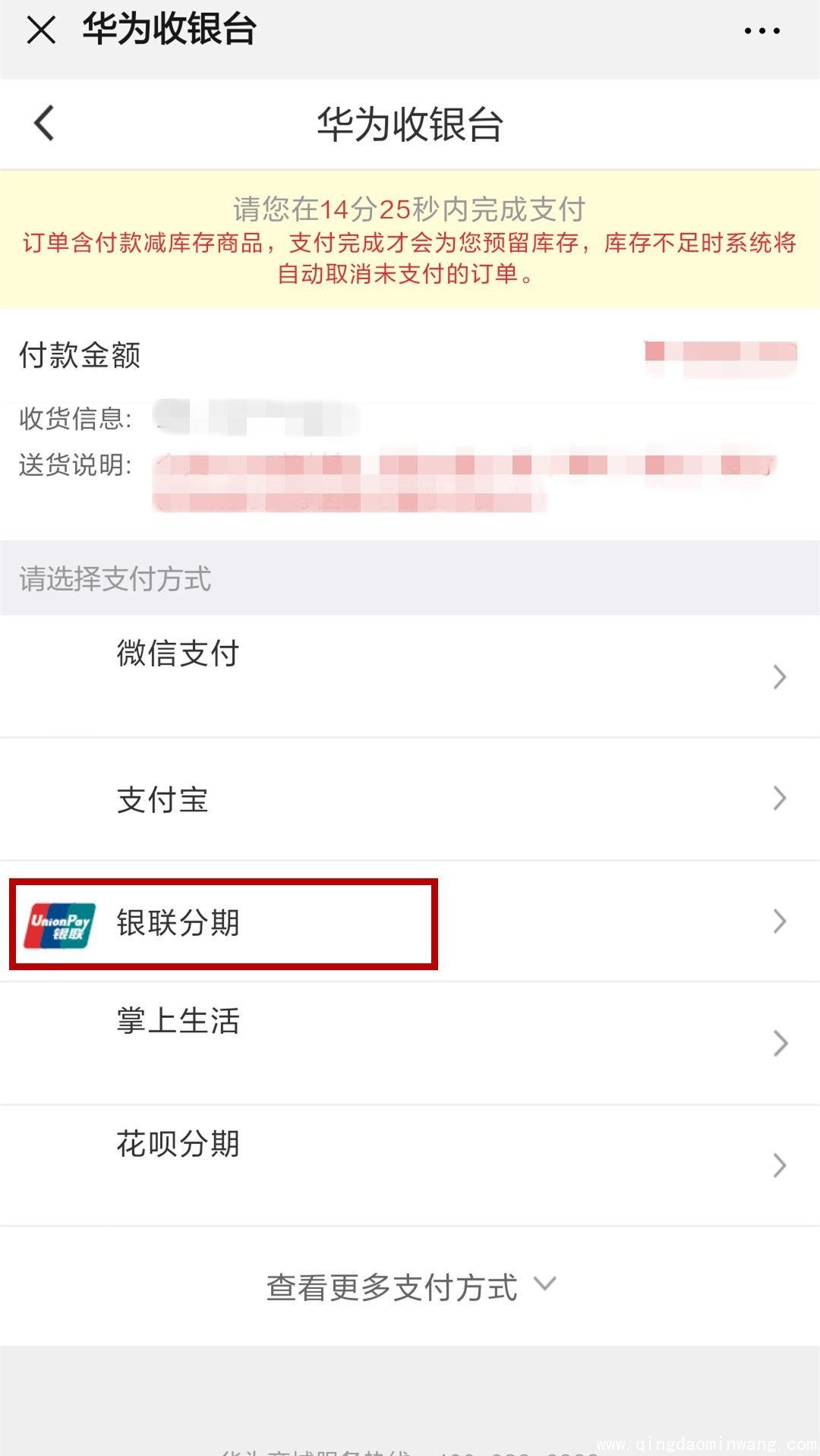 龙卡信用卡分期付款已登录华为商城