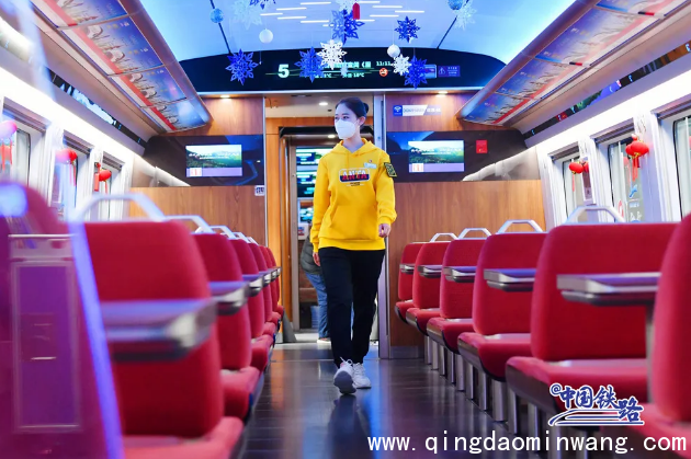商务车厢的半包式座椅不仅可以调整为半躺、平躺等多种角度,还具有按摩、加热功能。无线充电装置、LED阅读灯、车窗亮度调节按钮等,可为旅客提供优质的差异化服务。